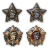 Присваивается игроку, получившему звание «Герой битвы» 1/10/100/1000 раз.